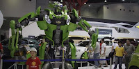 Kalau Anda pernah menonton film Transformers, ada robot berwarna hijau bernama Skids. Nah, robot tersebut hadir pada ajang IIMS 2010 di JIExpo dan mejeng di booth GM Autoworld Indonesia. Dan Anda pasti mengira benda tersebut didatangkan langsung dari Amerika.