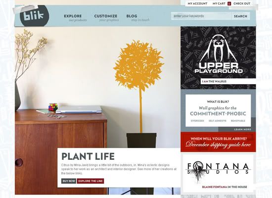 Blik memproduksi grafis dilepas aneh untuk rempah-rempah sampai dinding rumah Anda. Meskipun "Tentang" Info mendapat sedikit hilang dalam preview produk besar di tengah, mendapatkan ide dari apa Blik adalah semua tentang tidak memakan waktu lebih lama dari beberapa detik. Selain tampil gaya, pengalaman belanja mudah adalah apa yang membuat desain ini indah: semua produk yang dikategorikan oleh tag, thumbnail yang besar, deskripsi produk yang rinci dan didukung oleh garis stiker, dan tips cepat ditempatkan di sini dan ada untuk jaminan maksimum . Vintage-cari warna pudar dan logo berputar jauh untuk menambah keanggunan.