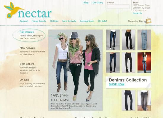 Website untuk pakaian dan aksesoris Nektar butik ini dirancang oleh studio Desain Sunrise . Struktur website memungkinkan Anda untuk menelusuri barang dan melakukan pembelian dengan mudah. Sebuah palet cat air dimatikan dan stroke tak terurus di latar belakang memberikan tata letak merasa positif. By the way, jika Anda mengunjungi halaman portfolio desainer, Anda akan melihat bahwa gaya harus dicat gairah mereka.